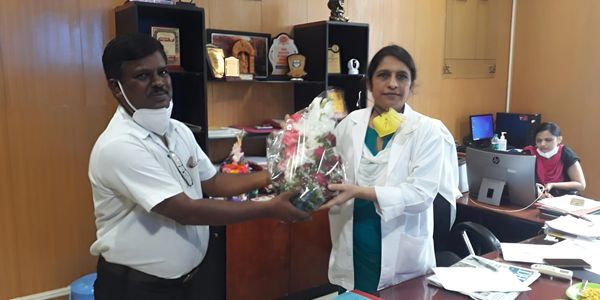 In the pandemic year 2020, The Medical Director of GIMS Kalburgi Dr Kavita Patil Appreciated for our responsible services given to GIMS Kalburgi. When there was no transport access for critical care services. Appreciation accepted by Mr. Chandrakant Sherikar